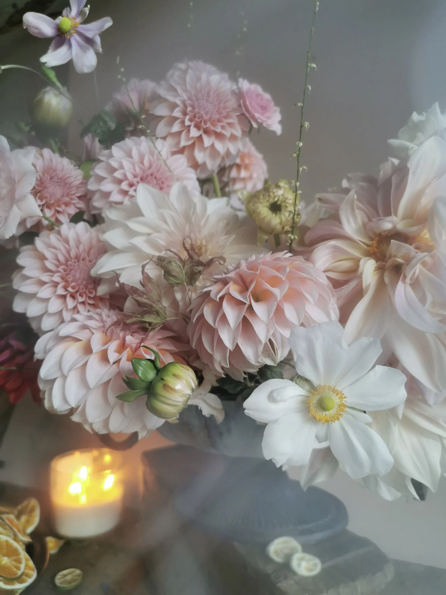 I run a small floral design business from my home studio, creating original botanical pieces that help people bring more natural elements into their homes.